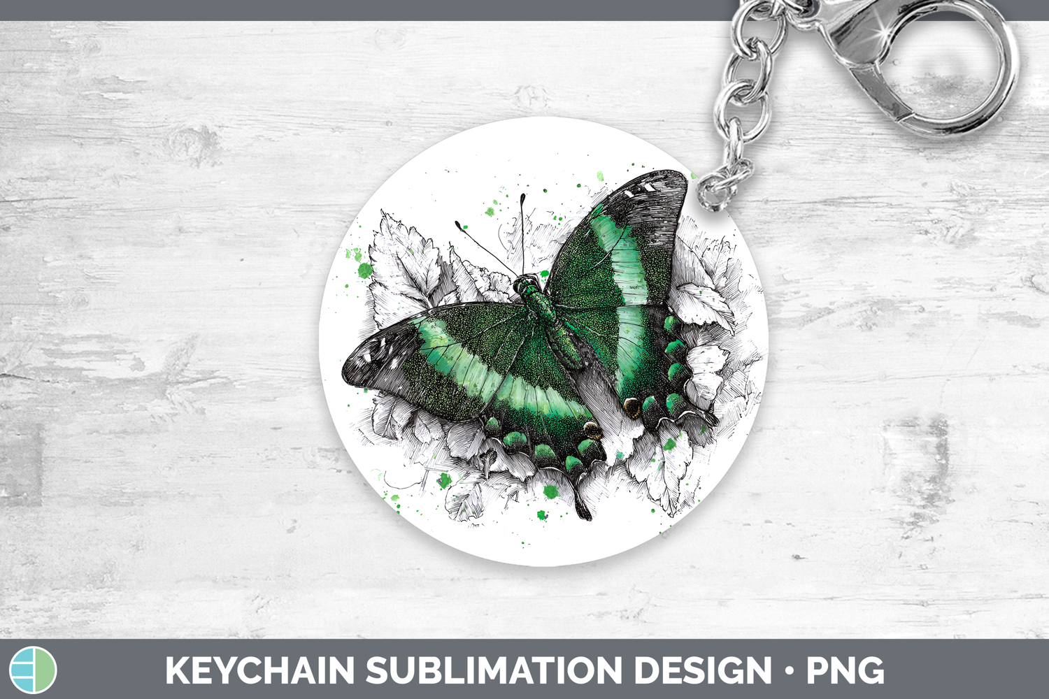 Emerald Swallowtail Butterflies Sketch Keychain Sublimation