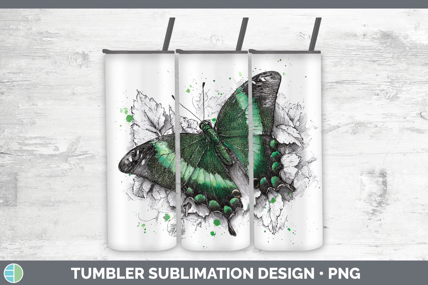 Similar Design Products to Emerald Swallowtail Butterflies Sketch Tumbler Sublimation D