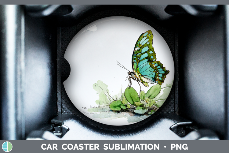 Malachite Butterflies Sketch Car Coaster Sublimation Design
