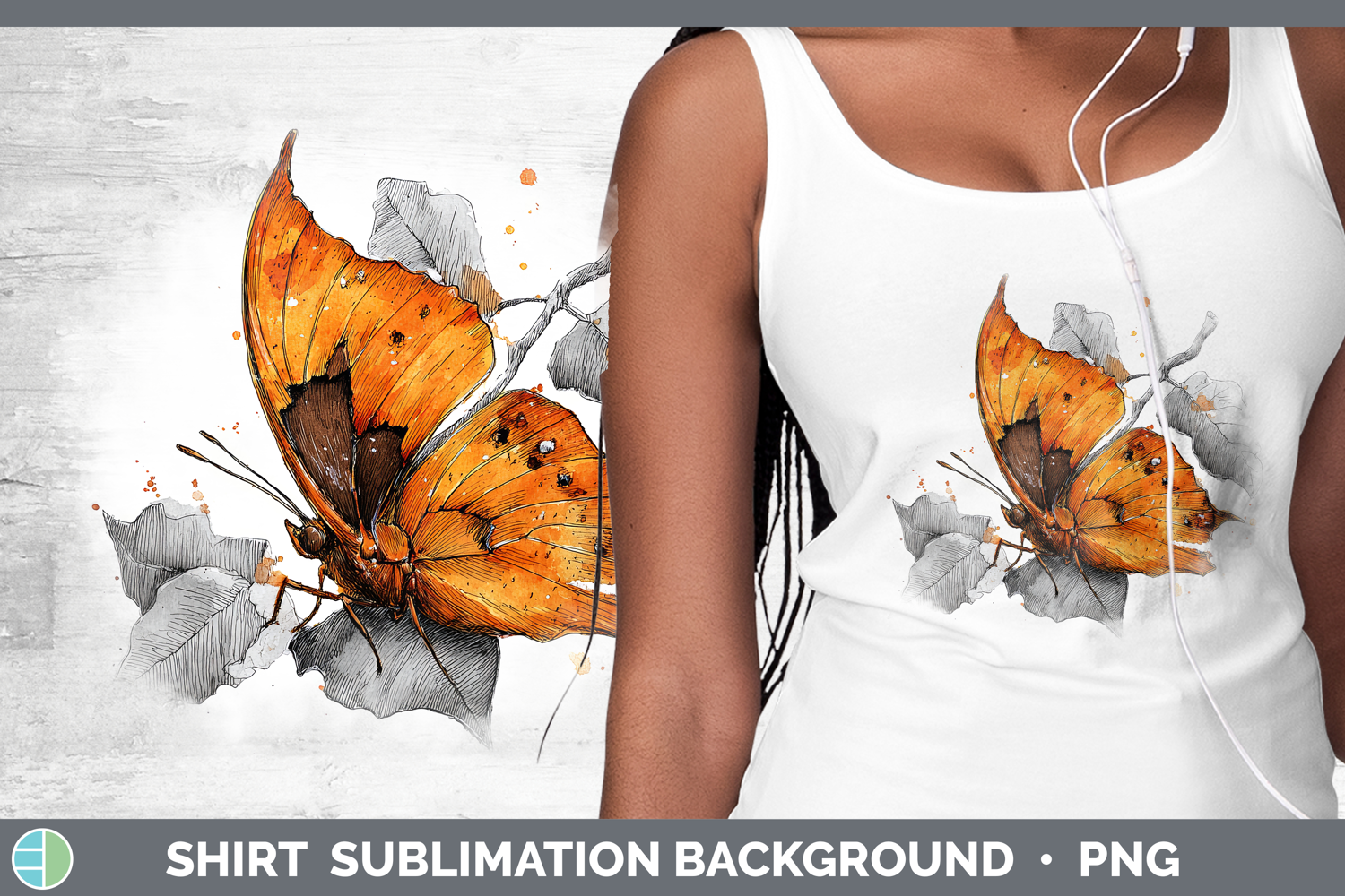 Orange Dead Leaf Butterflies Sketch Shirt Sublimation Design