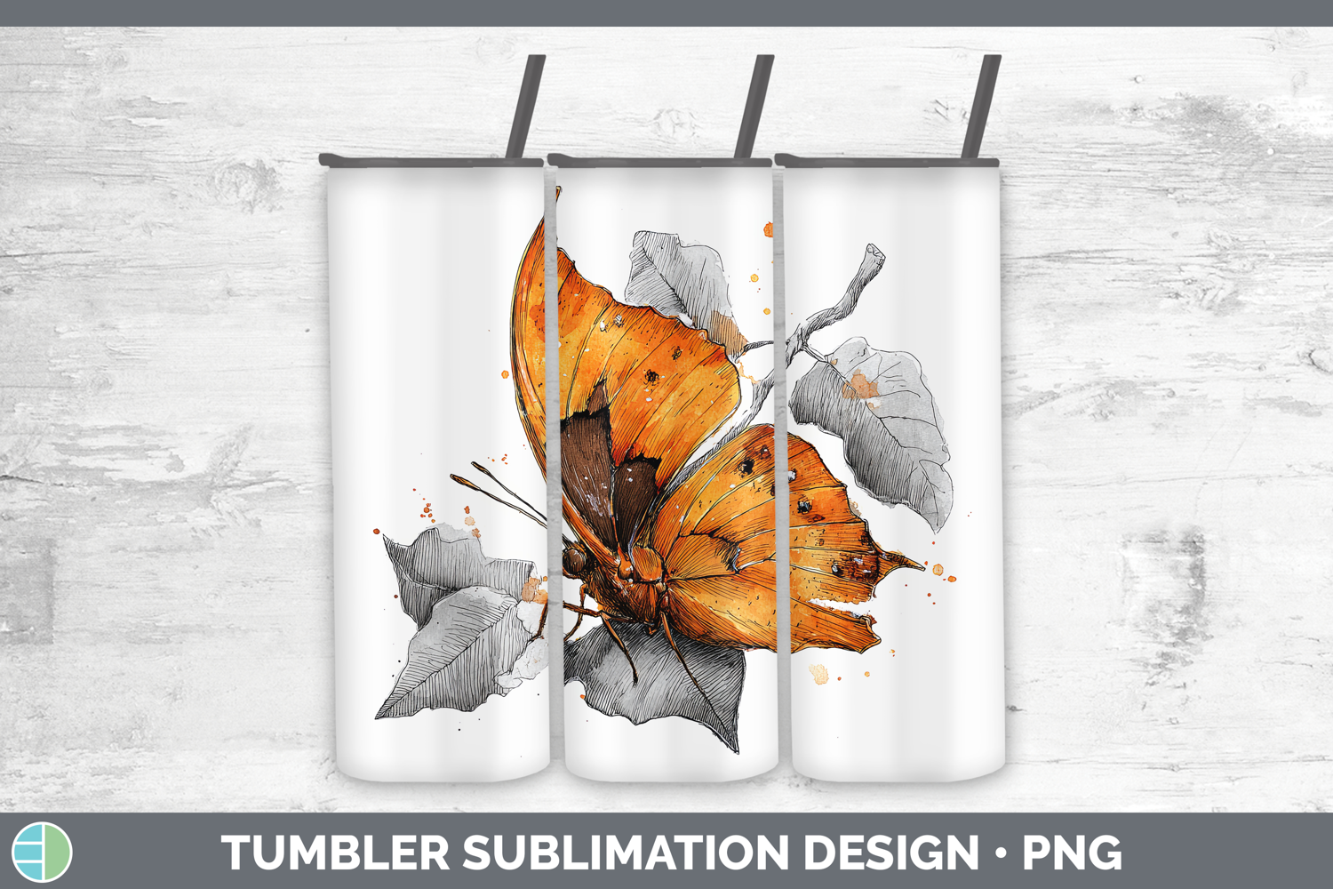 Orange Dead Leaf Butterflies Sketch Tumbler Sublimation Desi