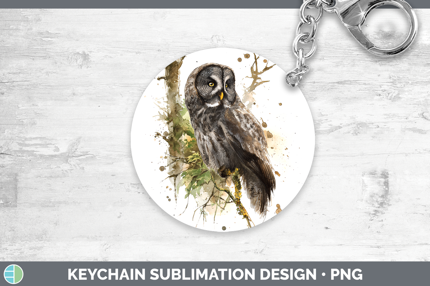Great Gray Owl Owls Sketch Keychain Sublimation Design