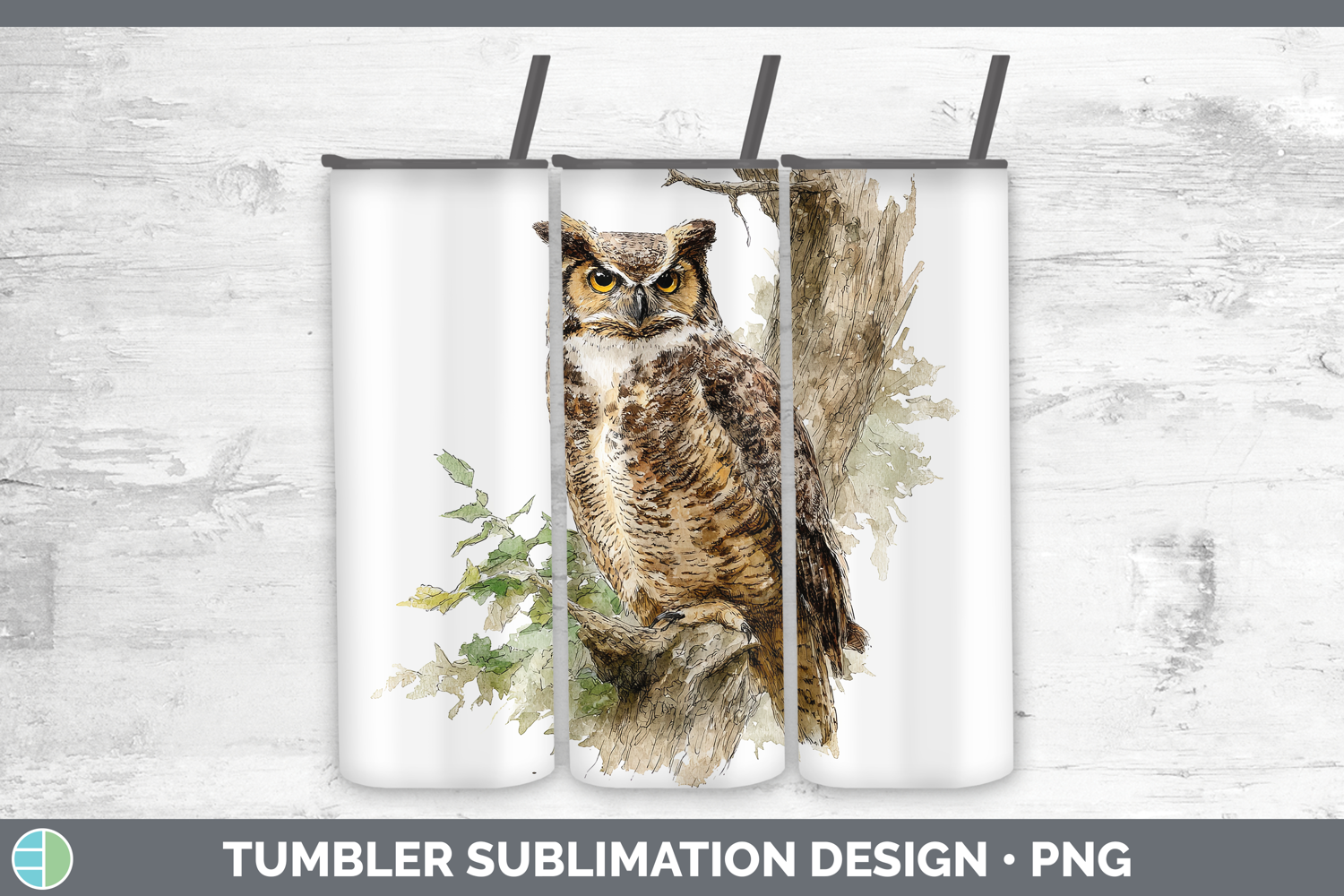 Great Horned Owl Owls Sketch Tumbler Sublimation Design