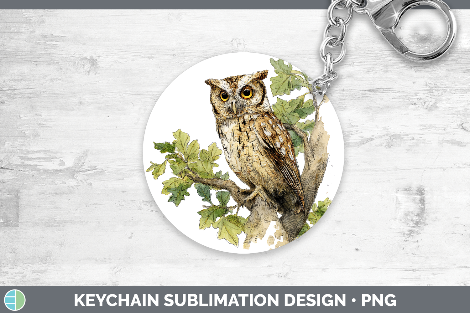 Scops Owl Owls Sketch Keychain Sublimation Design