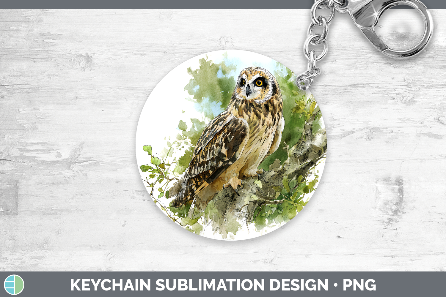 Short-eared Owl Owls Sketch Keychain Sublimation Design