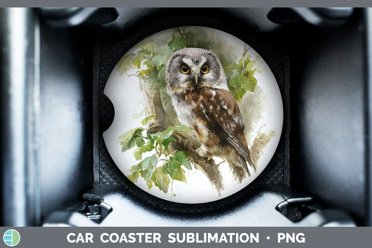 Boreal Owl Owls Sketch Car Coaster Sublimation Design
