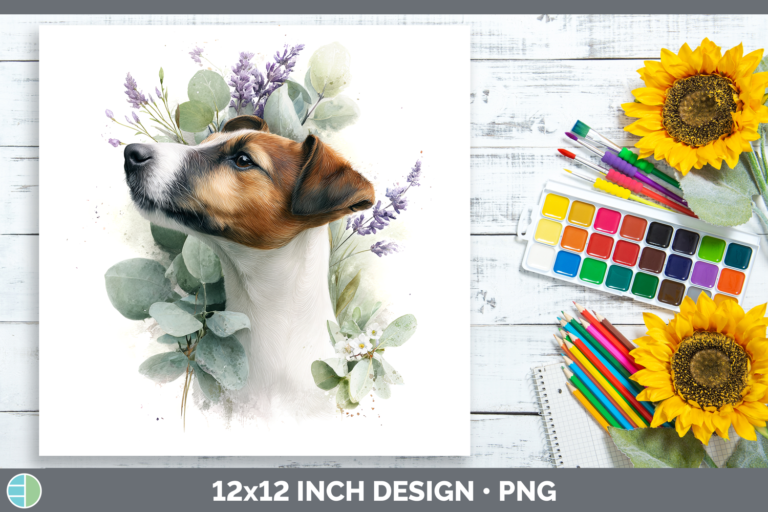 Fox Terrier Dogs 01 Lavender and Eucalyptus Paper Background