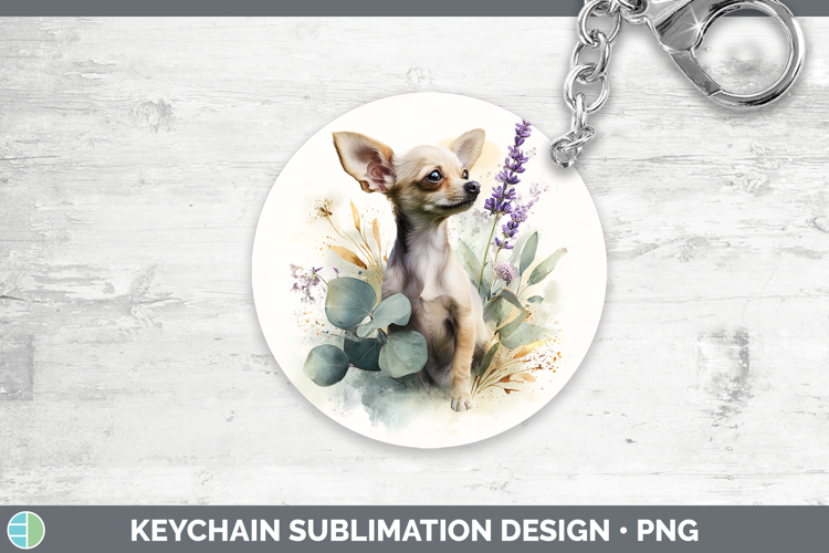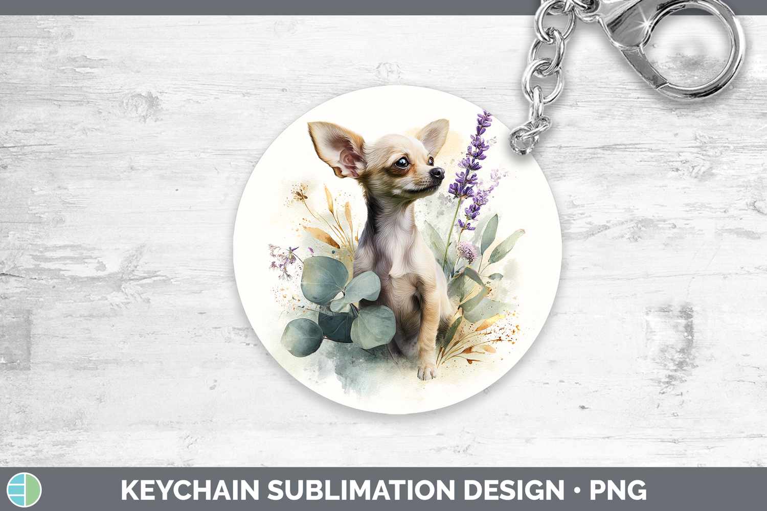 Chihuahua Dogs 01 Lavender and Eucalyptus Keychain Sublimati