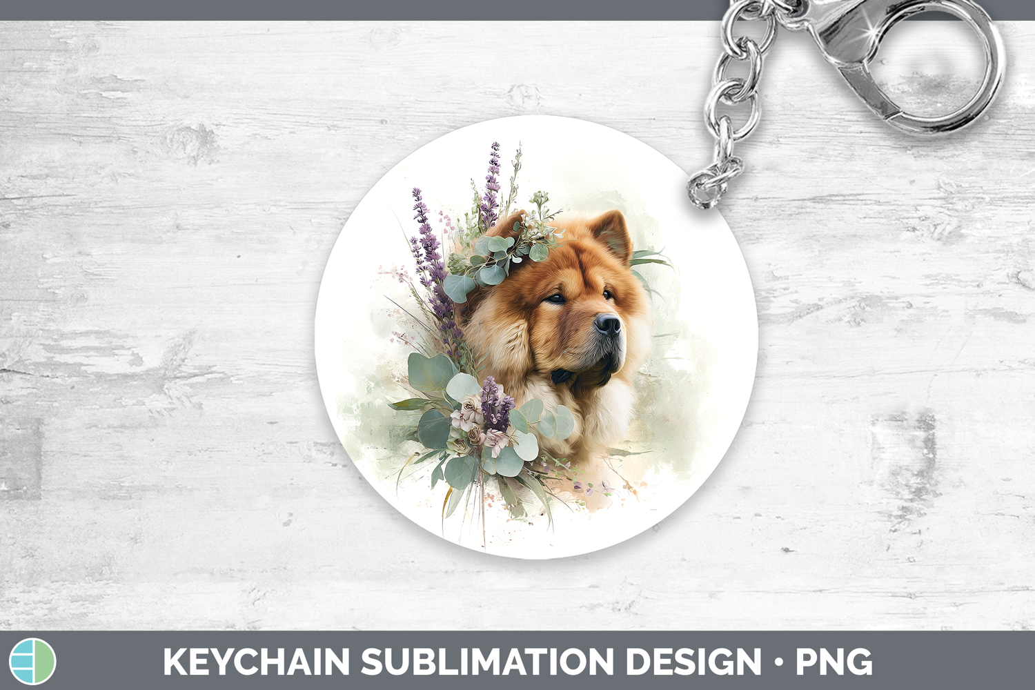 Chow Chow Dogs 01 Lavender and Eucalyptus Keychain Sublimati