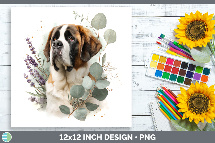 Saint Bernard Dogs 01 Lavender and Eucalyptus Paper Backgrou