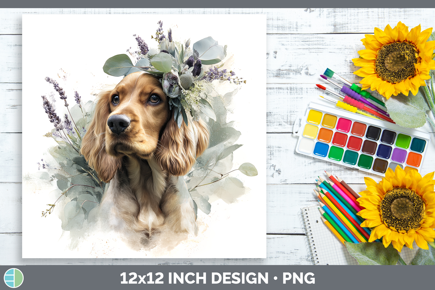 Cocker Spaniel Dogs 01 Lavender and Eucalyptus Paper Backgro