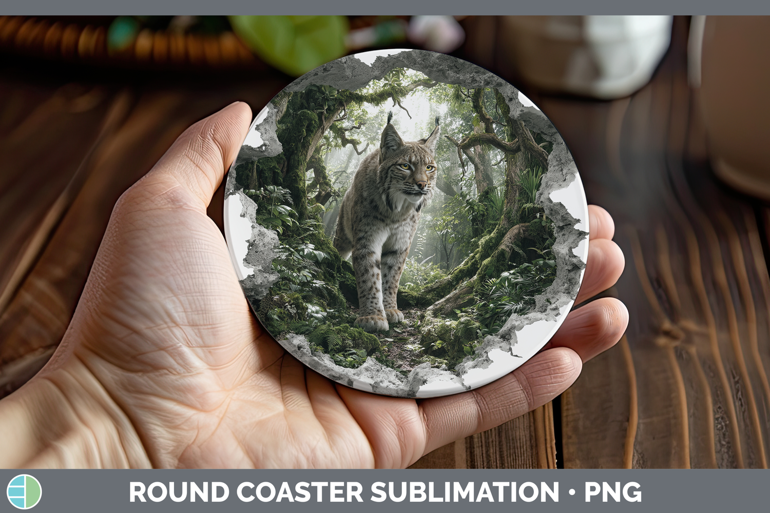 Bobcat Wild Cats 3D Hole Round Coaster Sublimation Design