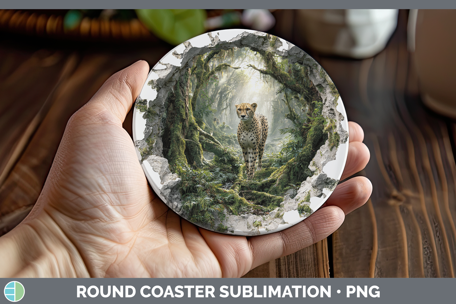 Cheetah Wild Cats 3D Hole Round Coaster Sublimation Design