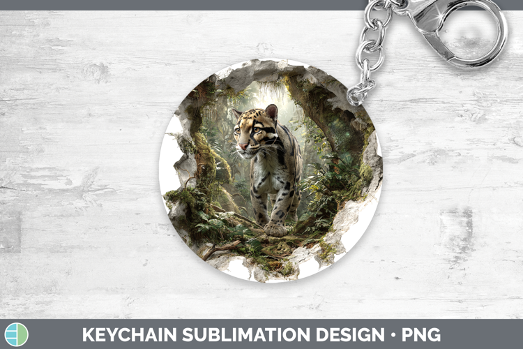 Leopard Clouded Wild Cats 3D Hole Keychain Sublimation Desig