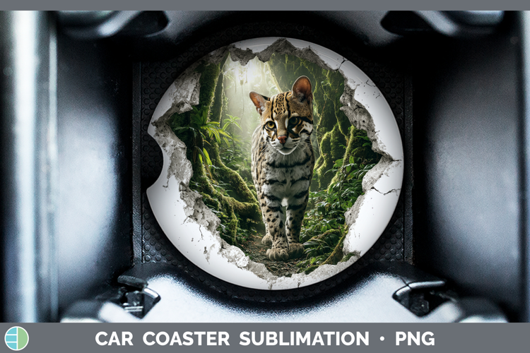 Margay Cat Wild Cats 3D Hole Car Coaster Sublimation Design
