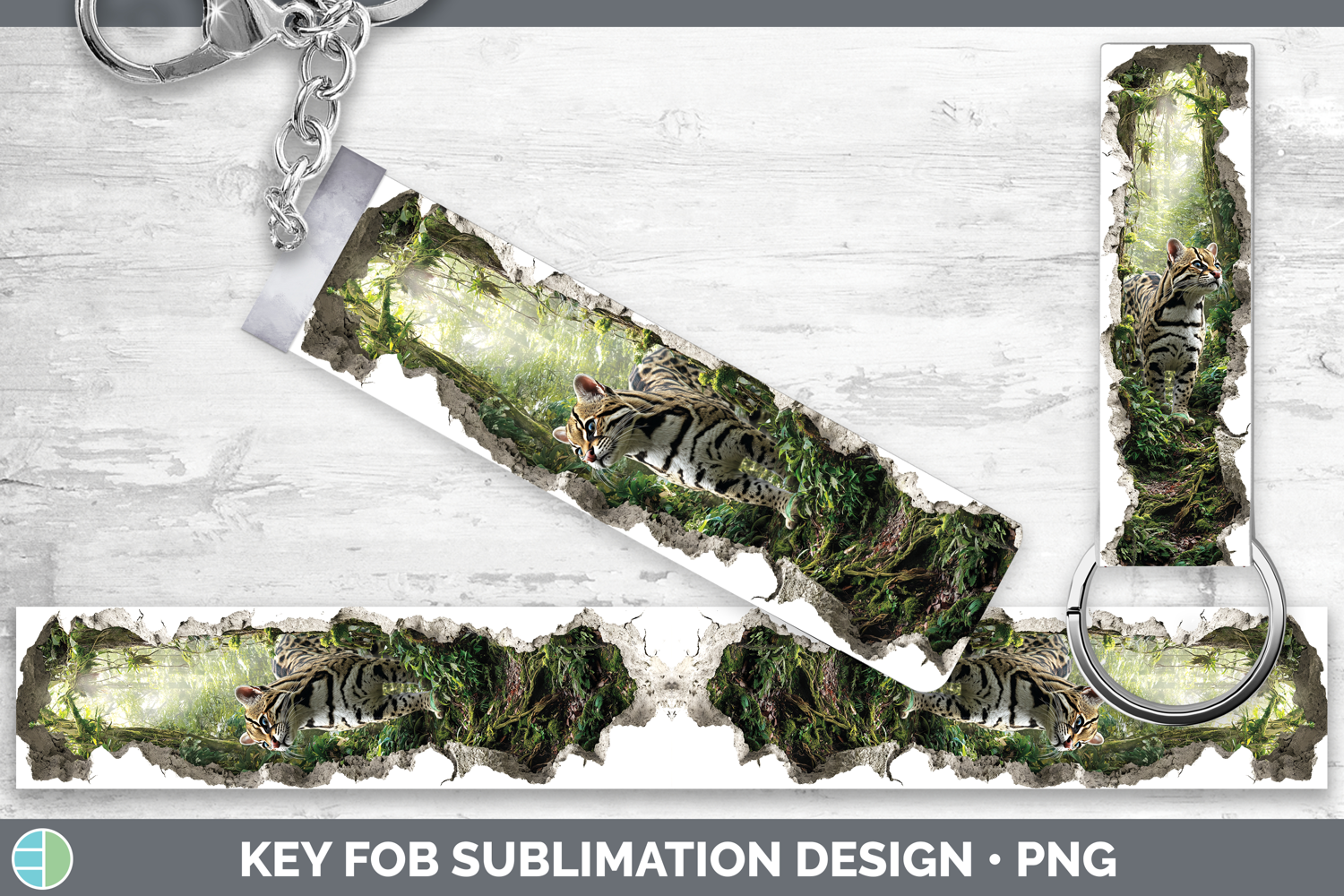 Margay Cat Wild Cats 3D Hole Key Fob Sublimation Design