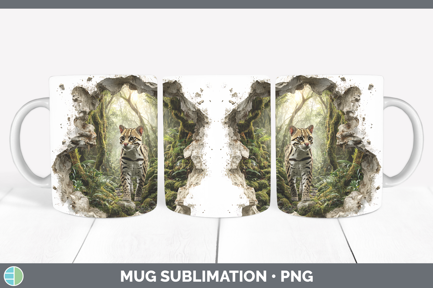 Ocelot Wild Cats 3D Hole Mug Wrap Sublimation Design