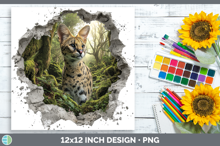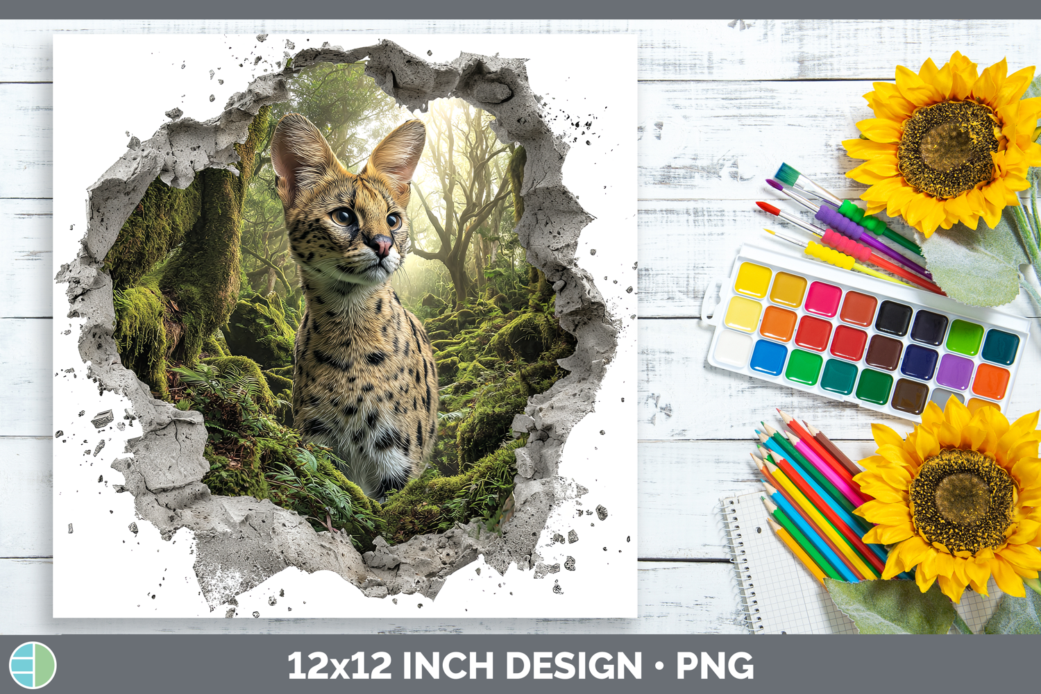 Serval Wild Cats 3D Hole Paper Backgrounds Design