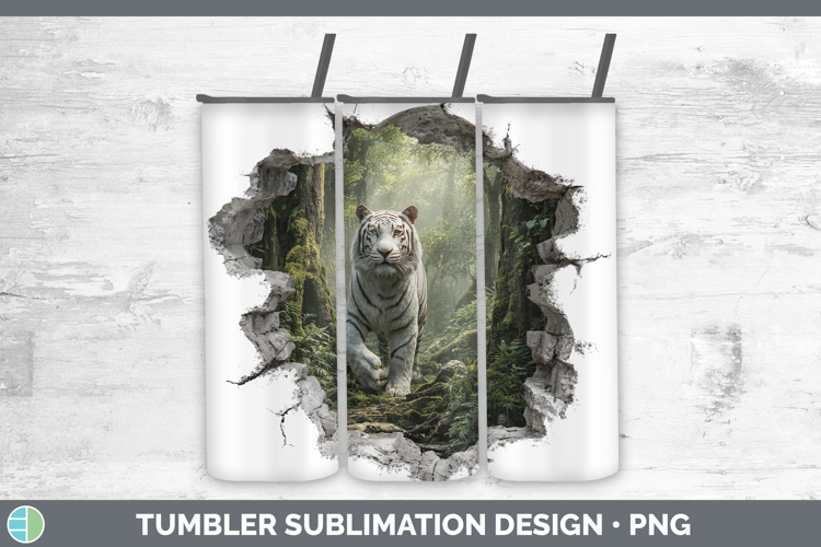 White Tiger Wild Cats 3D Hole Tumbler Sublimation Design
