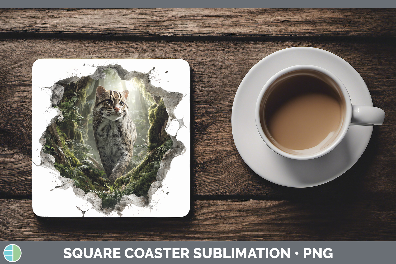 Fishing Cat Wild Cats 3D Hole Square Coaster Sublimation Des