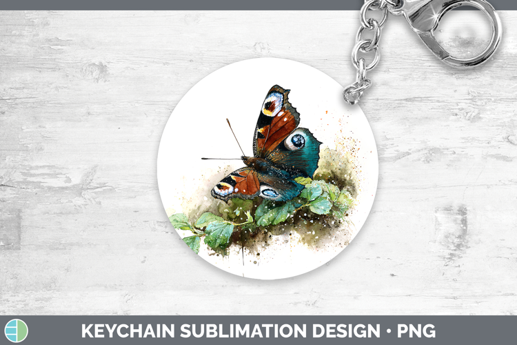 Peacock Butterflies Sketch Keychain Sublimation Design