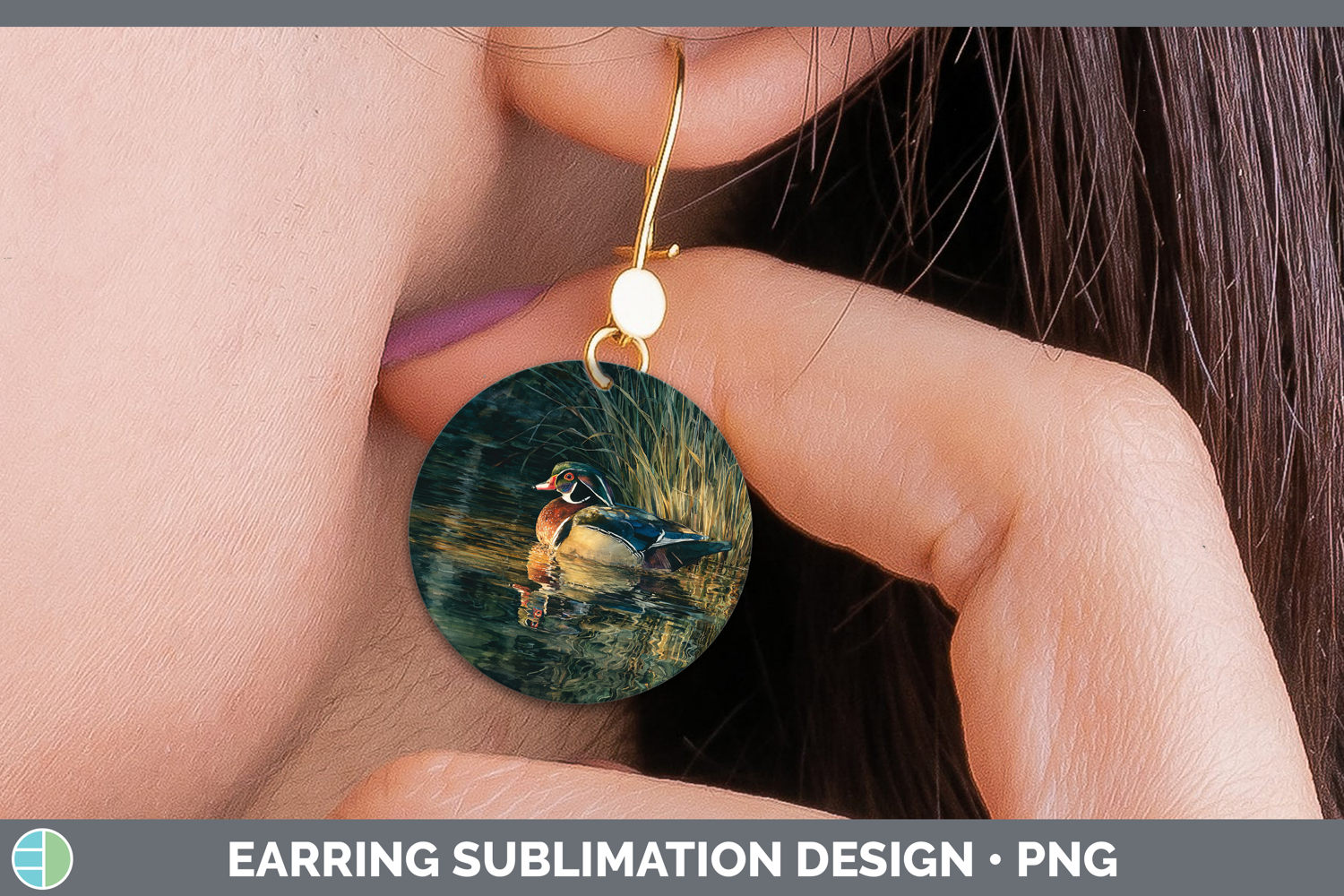 Wood Duck Waterfowl Sunset Round Earrings Sublimation Design