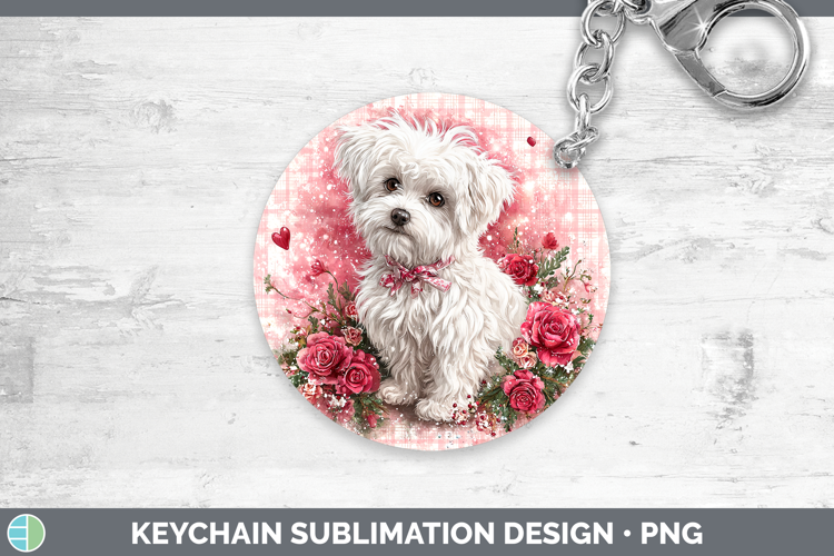 Maltese Dogs 03 Checker Valentine Keychain Sublimation Desig