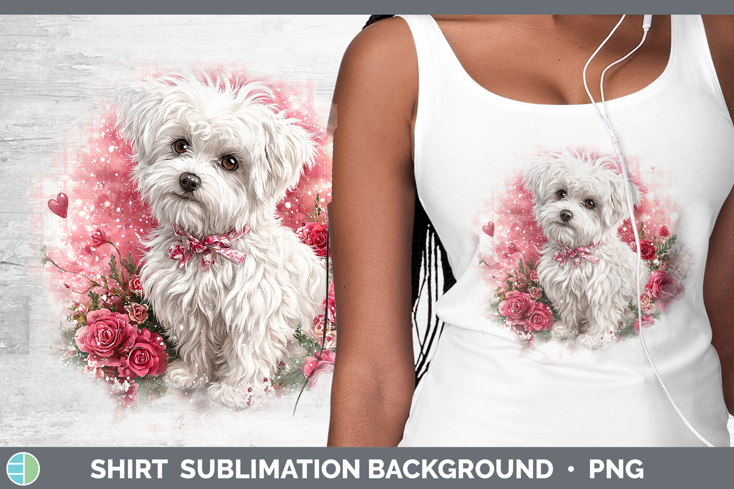 Maltese Dogs 03 Checker Valentine Shirt Sublimation Design