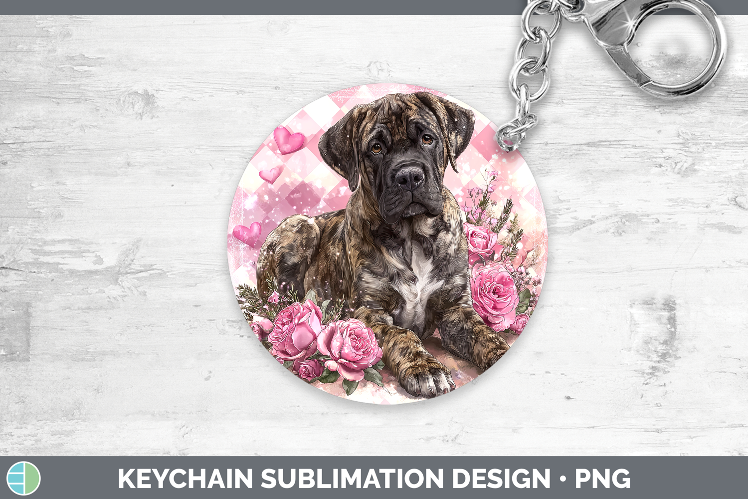 Mastiff Dogs 03 Checker Valentine Keychain Sublimation Desig