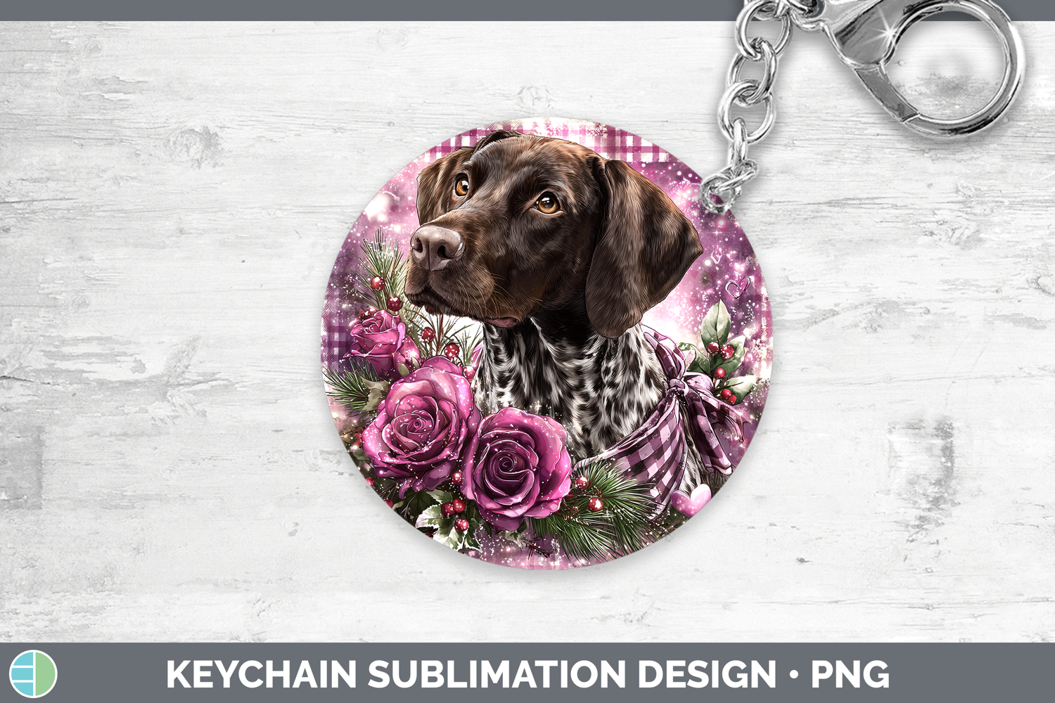 Shorthaired Pointer Dogs 03 Checker Valentine Keychain Subli