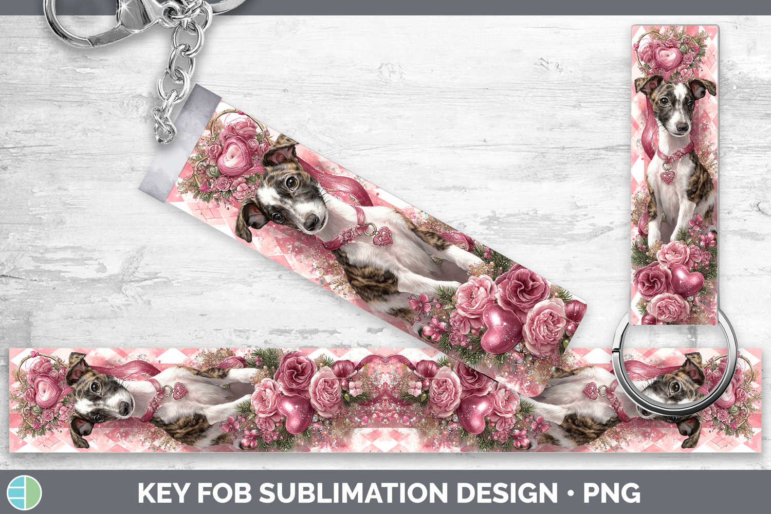 Whippet Dogs 03 Checker Valentine Key Fob Sublimation Design