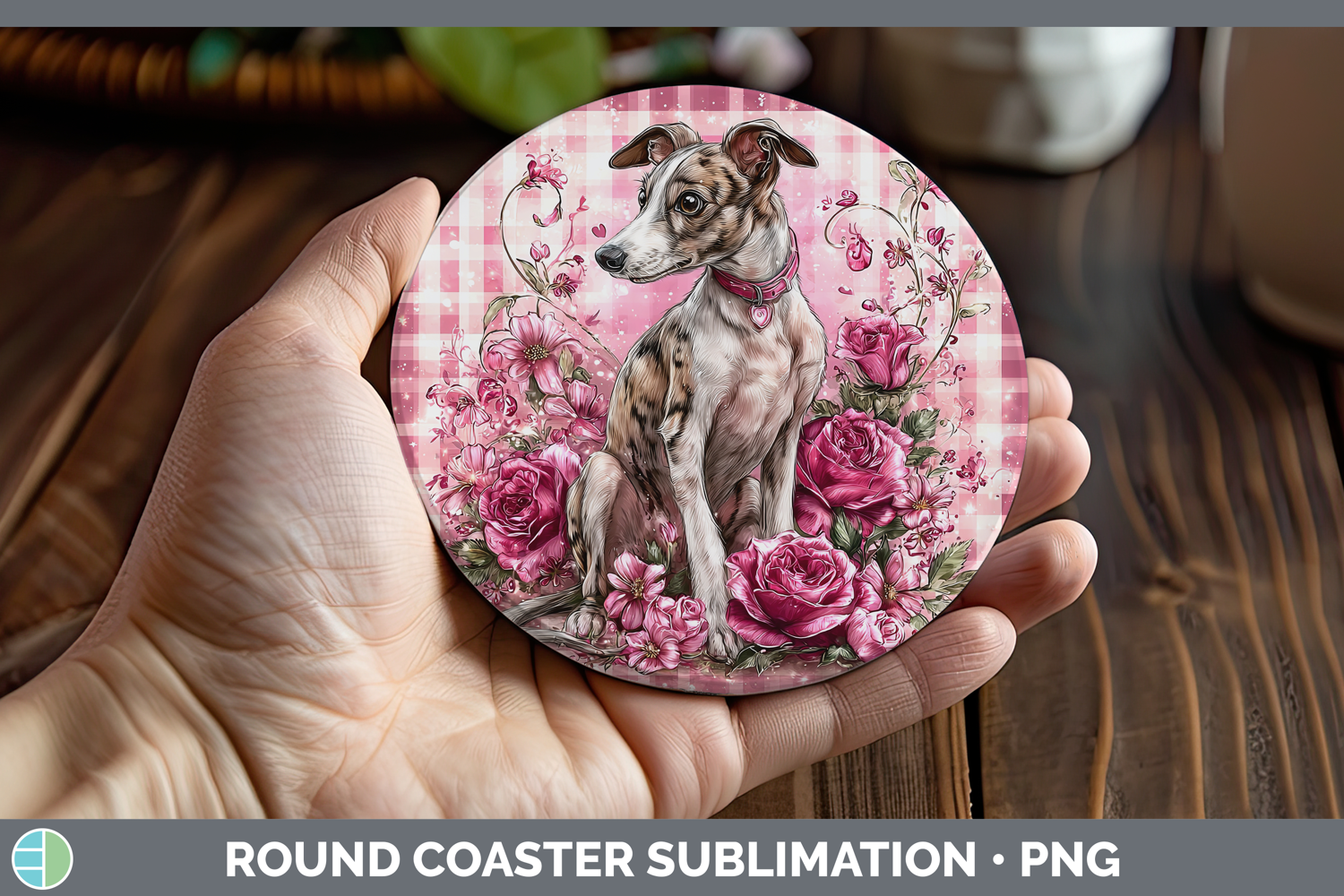 Whippet Dogs 03 Checker Valentine Round Coaster Sublimation