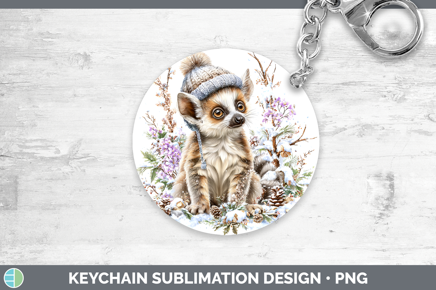 Similar Design Products to Ring-tailed Lemur Primate Winter Knit Hat Keychain Sublimati