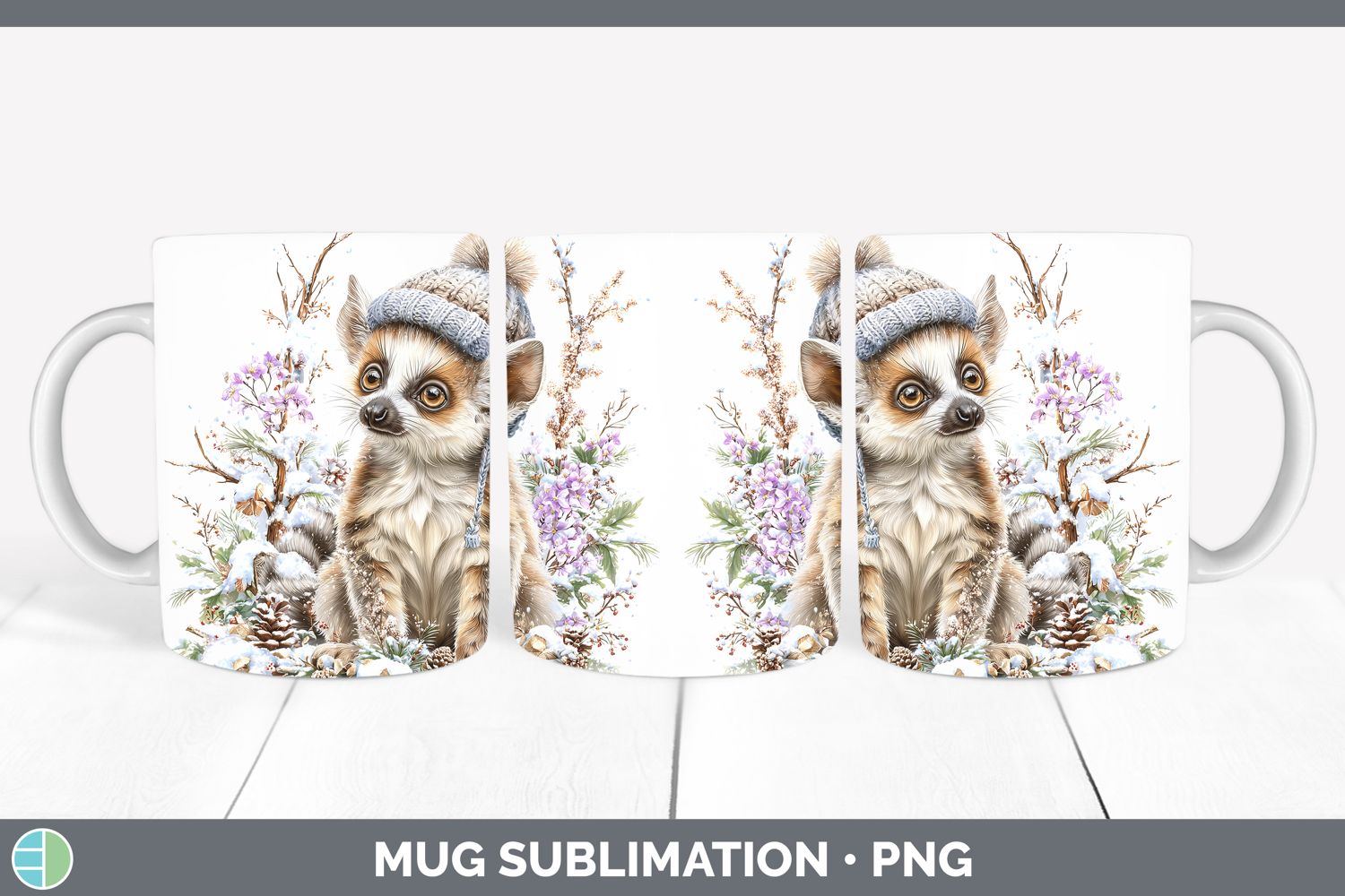 Similar Design Products to Ring-tailed Lemur Primate Winter Knit Hat Mug Wrap Sublimati