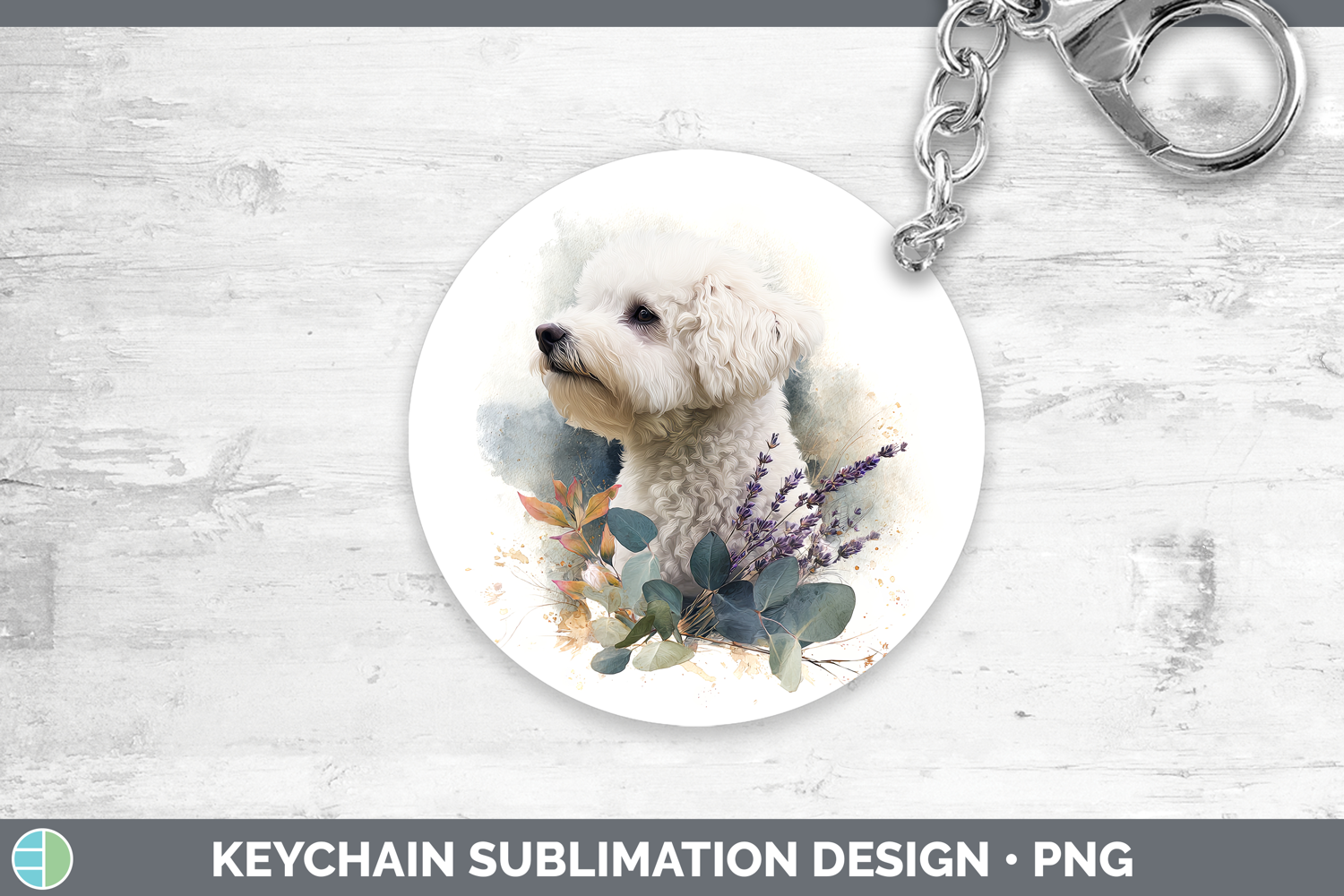Bichon Frise Dogs 02 Lavender and Eucalyptus Keychain Sublim