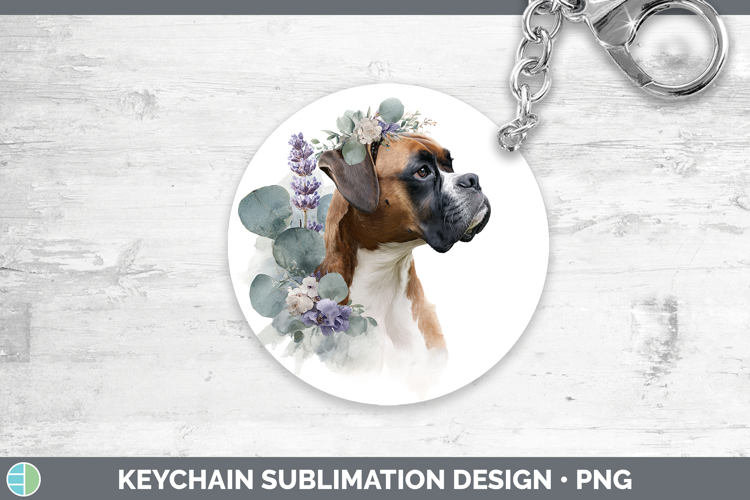 Boxer Dogs 02 Lavender and Eucalyptus Keychain Sublimation D