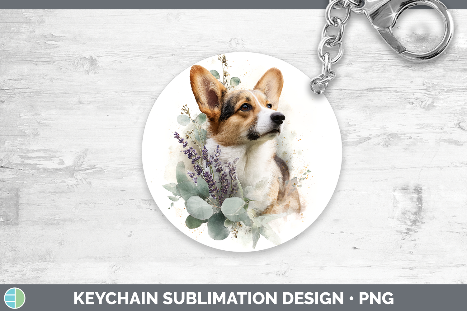 Pembrook Corgi Dogs 02 Lavender and Eucalyptus Keychain Subl