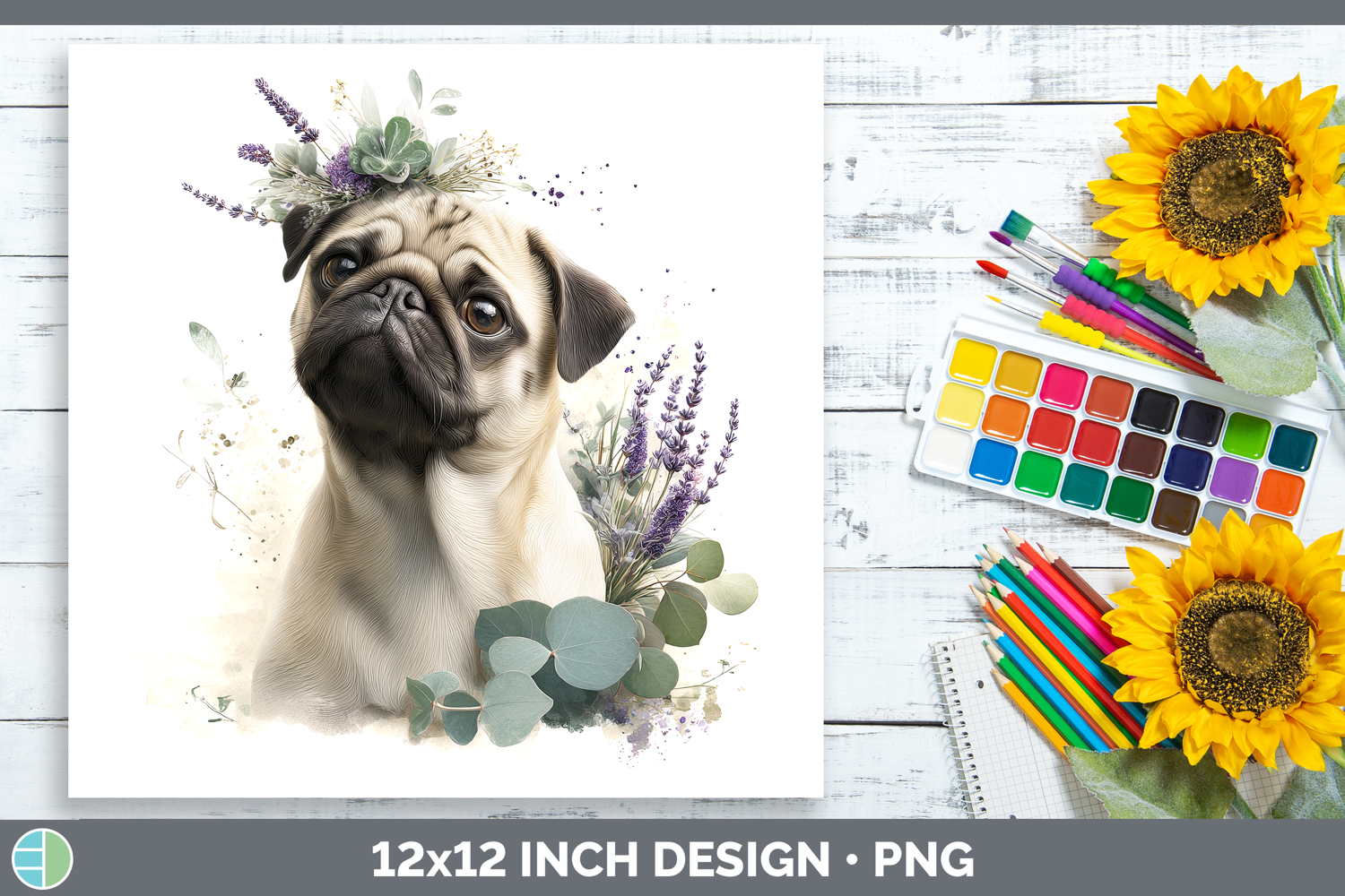 Similar Design Products to Pug Dogs 02 Lavender and Eucalyptus Paper Backgrounds Design
