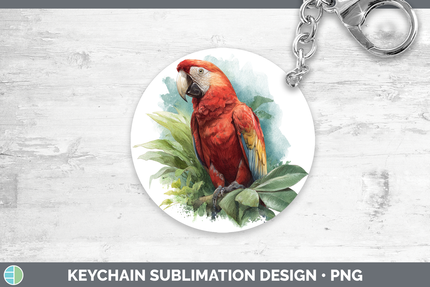 Scarlet Macaw Parrot Botanicals Keychain Sublimation Design