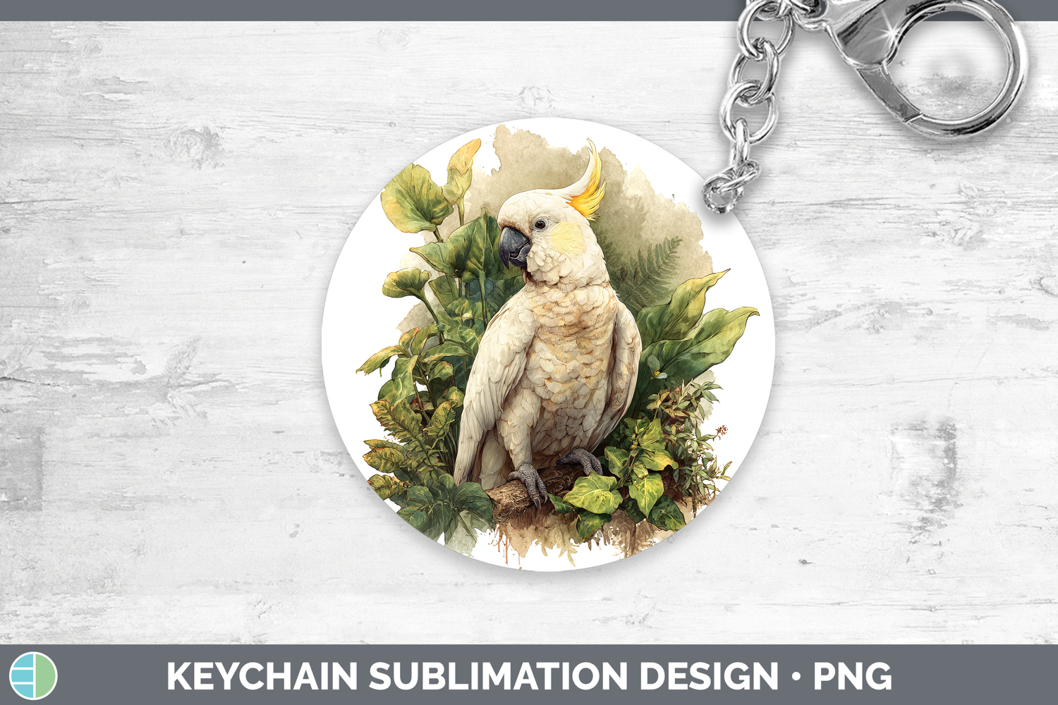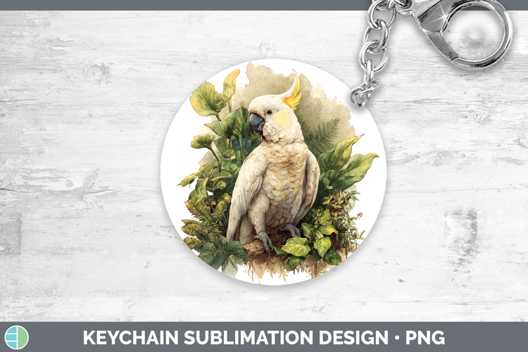 Sulphur-Crested Cockatoo Parrot Botanicals Keychain Sublimat