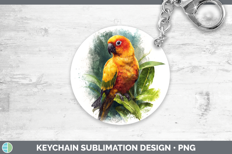 Sun Conure Parrot Botanicals Keychain Sublimation Design