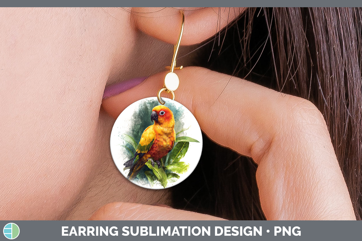 Sun Conure Parrot Botanicals Round Earrings Sublimation Desi