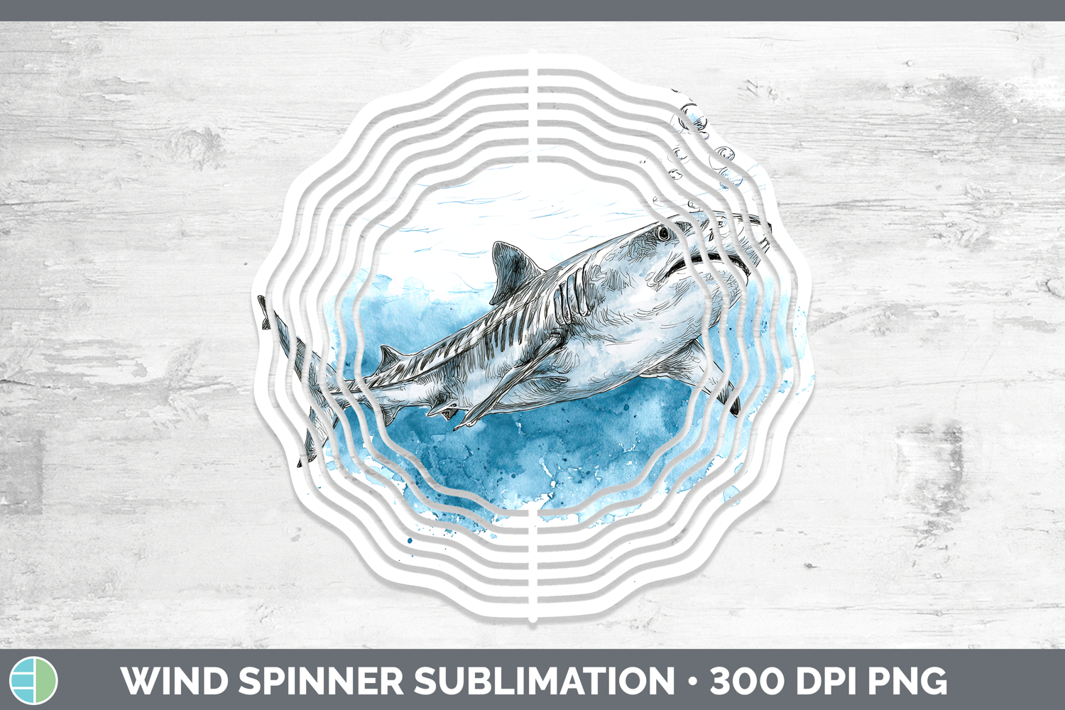 Tiger Shark Sketch Wind Spinner Sublimation Design
