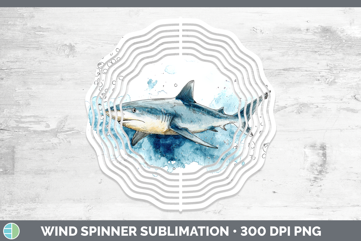 Reef Shark Sketch Wind Spinner Sublimation Design