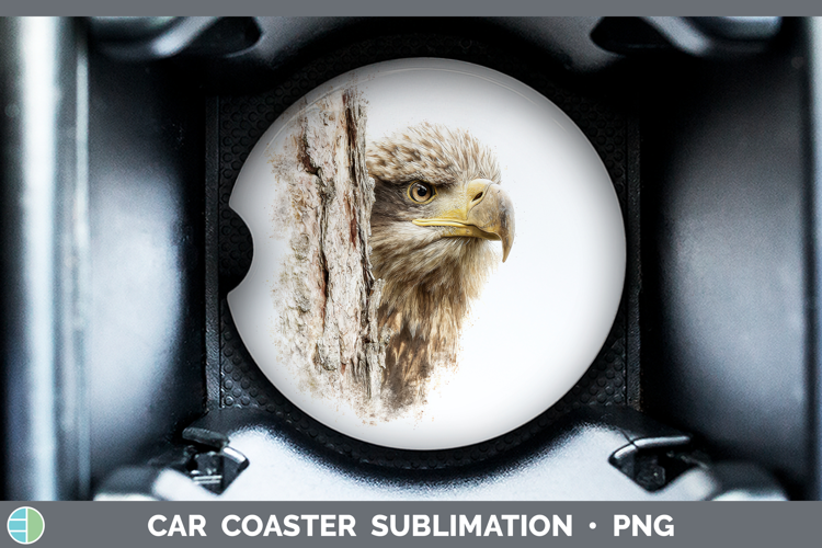 Whitetailed Eagle Tree Peek Car Coaster Sublimation Design example image 1
