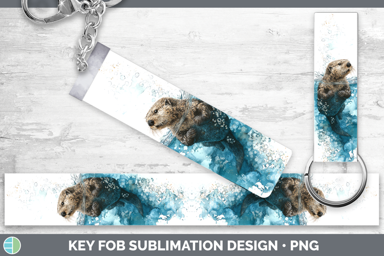 Sea Otter Marine Mammal Sketch Key Fob Sublimation Design
