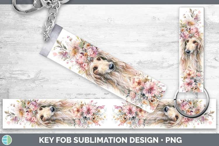 Afghan Hound Dogs 05 Floral Crown Key Fob Sublimation Design