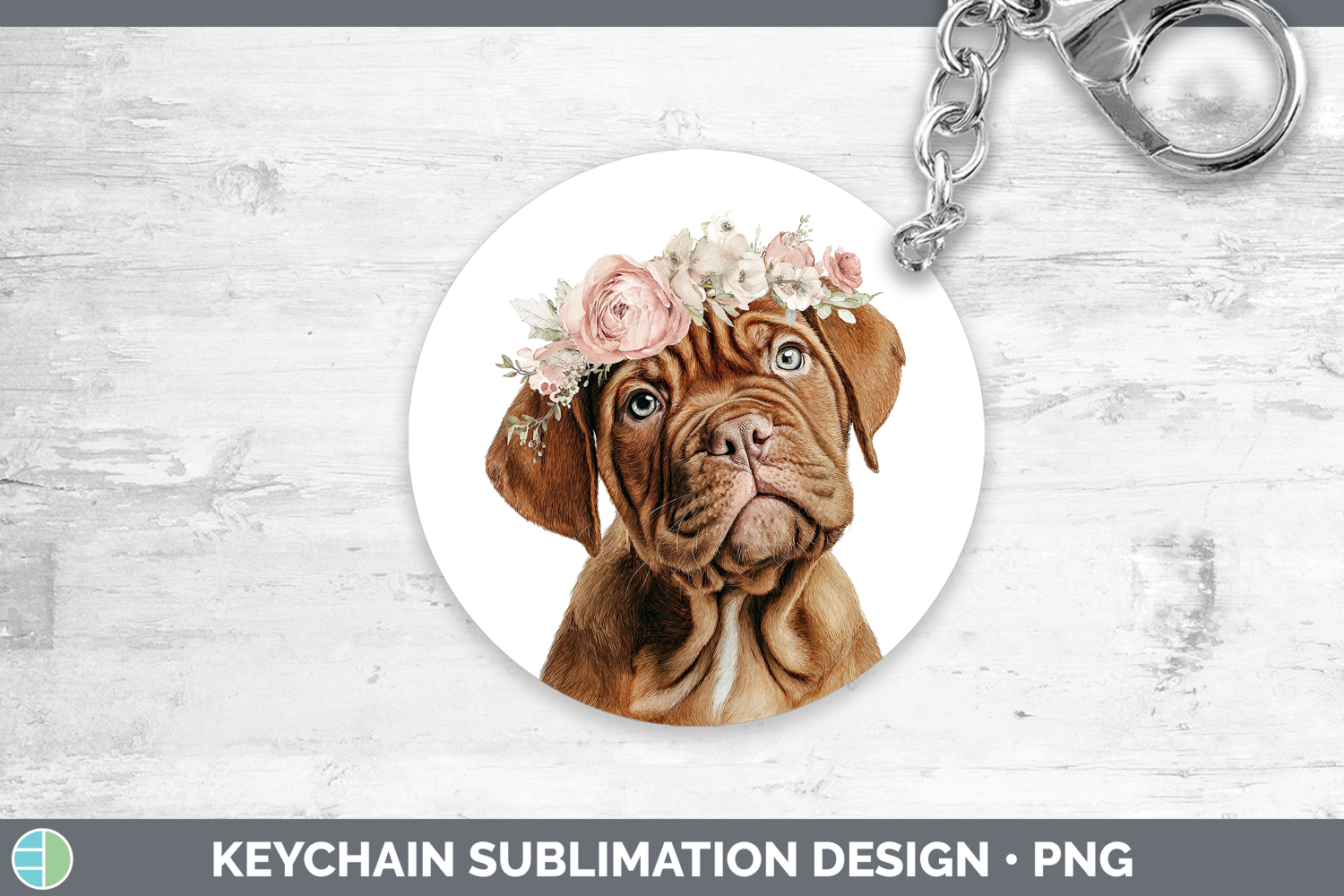 Bordeaux Mastiff Dogs 05 Floral Crown Keychain Sublimation D