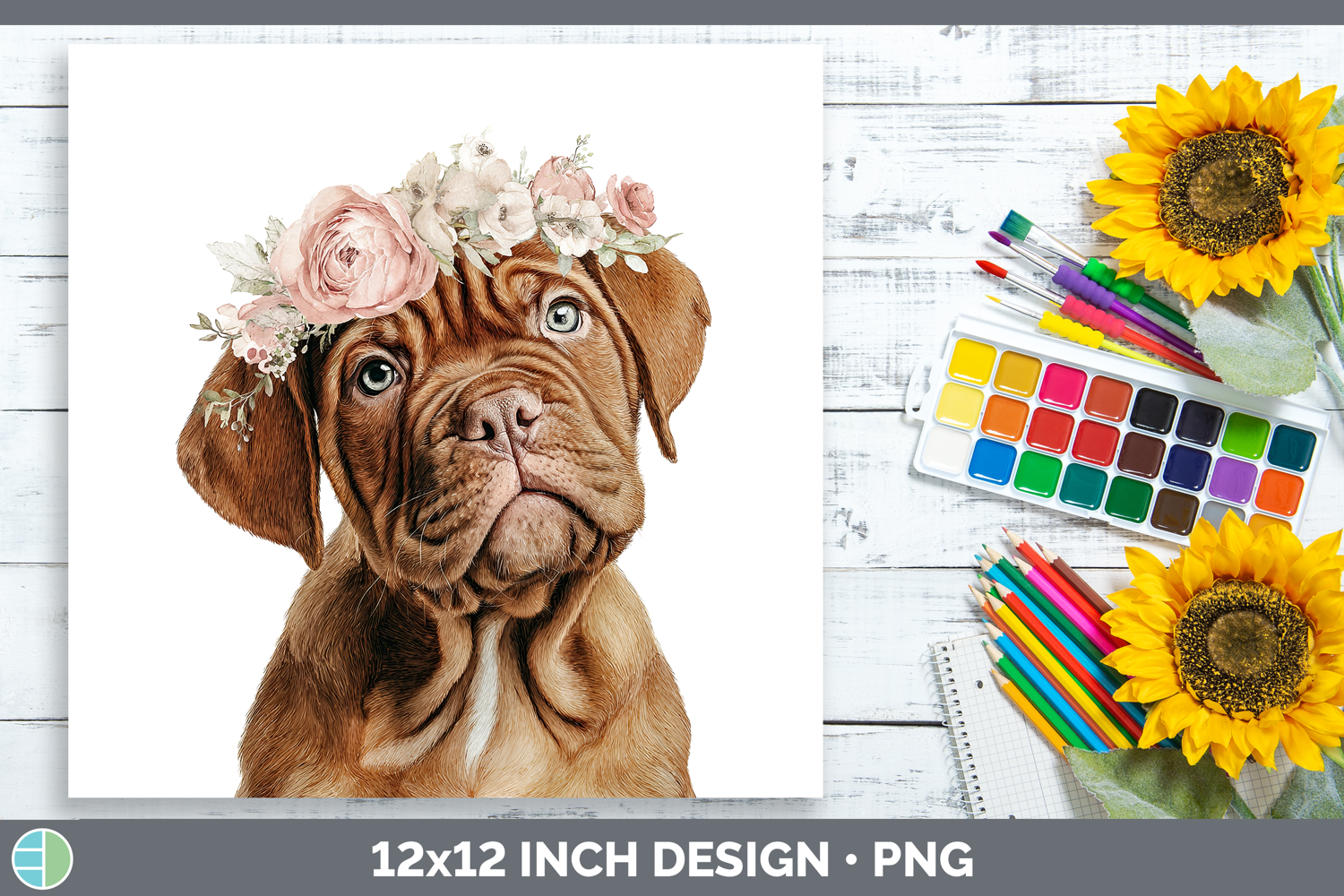 Bordeaux Mastiff Dogs 05 Floral Crown Paper Backgrounds Desi