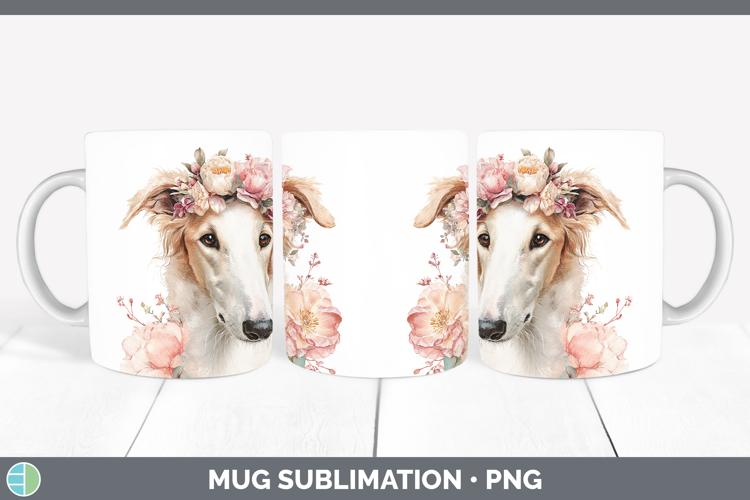 Borzoi Dogs 05 Floral Crown Mug Wrap Sublimation Design